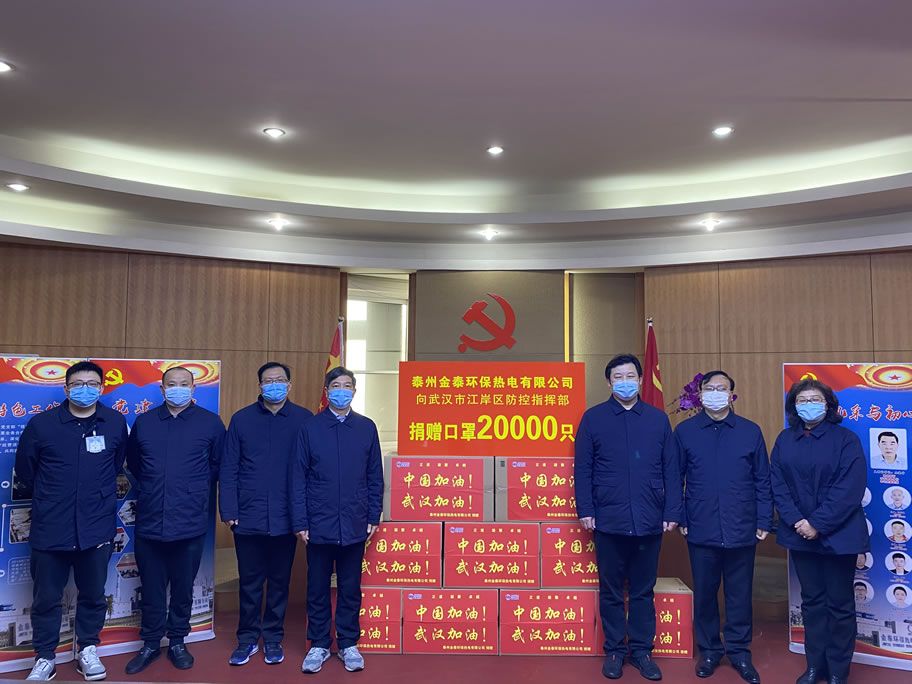 冬去春来,一场疫情防控的狙击战在全国打响。 与时间赛跑、与病魔较量,这是一场没有硝烟的战争,不管身在何处都能感受到疫情防控的紧张氛围。对于企业,发一度电,点亮的是万家灯火;供一缕汽,温暖的是千家百户。对于金泰,虽不在抗疫一线,但仍心系武汉疫情、关注国家大事。 武汉作为全国疫情中心,防疫物资极度短缺,防疫工作极度艰辛,武汉疫情防控工作牵动着全国人民的心。对此,金泰热电管理层呼吁公司全体员工一起为全国防疫工作贡献力量,并与泰州市滨江工业园区管委会联系,希望能够助力武汉防疫战,同时通过各种渠道采购防护口罩。经过多方沟通协调、几经辗转,累计采购两万只医用专业防护口罩,尽管防疫物资依旧匮乏,但公司还是将采购的两万只医用专业防护口罩无偿捐赠给武汉市江岸区防控指挥部,用于前线疫情防控工作。守望相助、坚忍不拔是中华民族的传统美德,在这非常时刻,前线的白衣战士用生命捍卫国人无恙,后方的我们也要挺身而出、传递希望、汇聚磅礴力量,去迎接战胜疫情的曙光。 此时此刻,只因我们都是中国人,万事皆是家国事;惟其艰难、方显担当,在这场全民战疫中,金泰热电用实际行动诠释了新时代下企业的新境界、新作为。 拳拳赤子心、浓浓家国情。