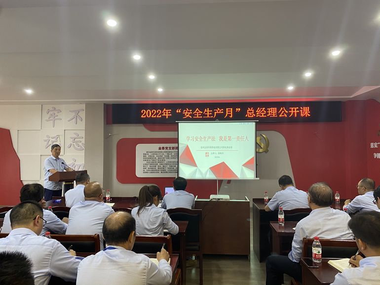 根据“安全生产月”活动方案,6月10日下午,总经理徐振华在化水楼三楼会议室举行了以《学习安全生产法,我是第一责任人》为主题的安全生产公开课,所有班组长以上50余人参加。
